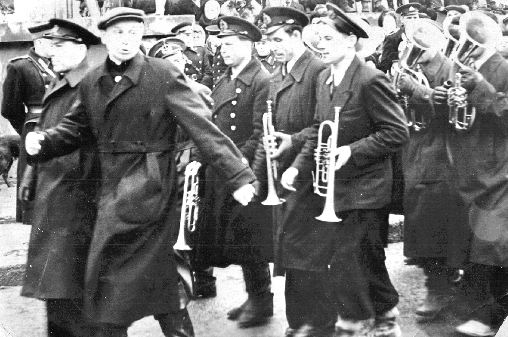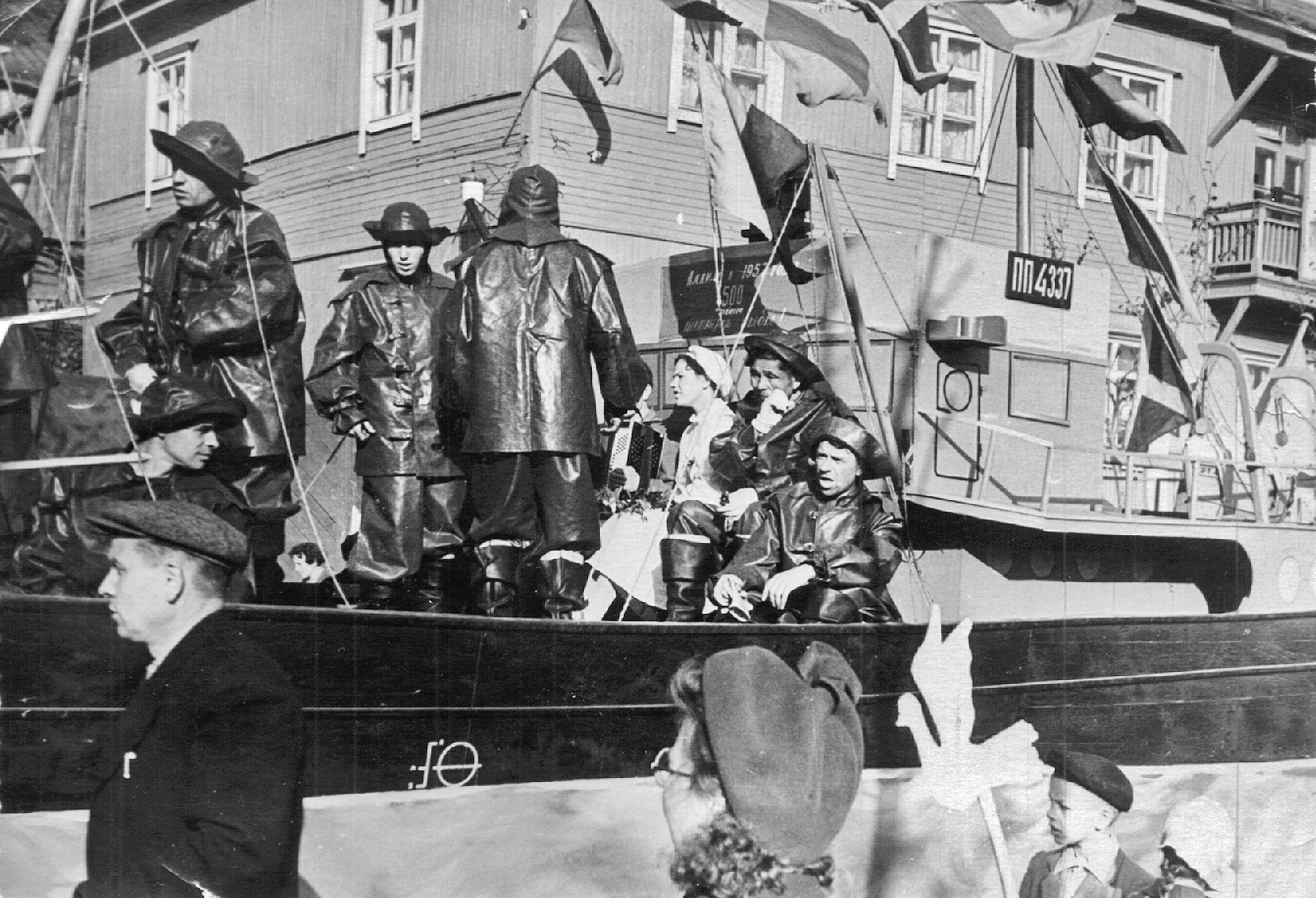 184. «Инсталляция» образца 1950-х гг. Моряки Тралфлота на демонстрации (из собрания А. Е. Мамонтова)