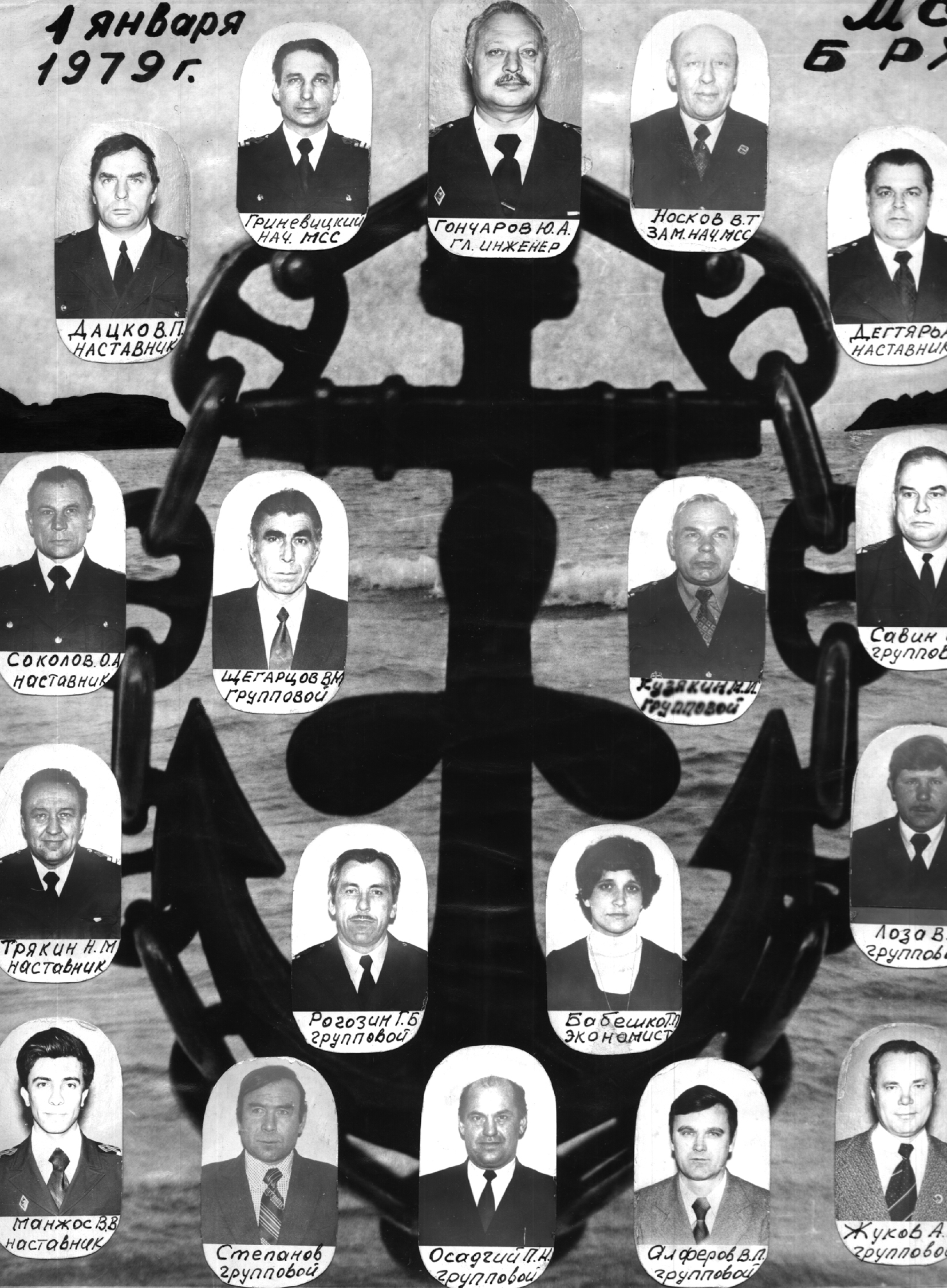 55. Работники механико-судовой службы Петропавловской базы "Рыбхолодфлот", 1 января 1979 г. (из собрания Г. Б. Рогозина)