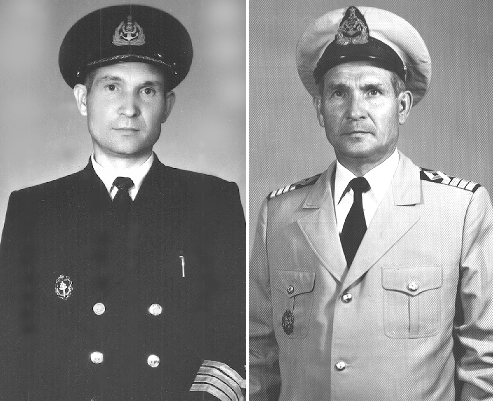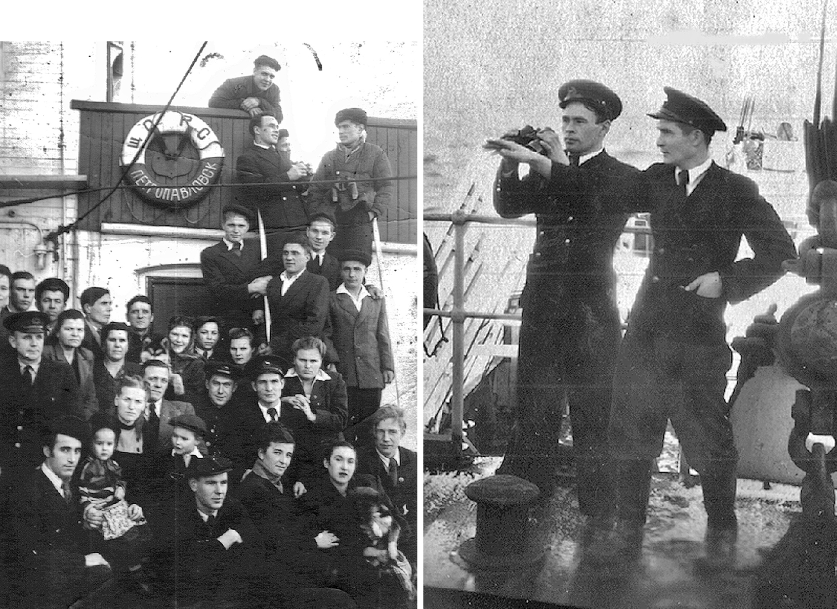 193. Слева — Тимофей Михайлович Кривоногов, штурман парохода «Якут» Камчатрыбфлота, 1948 г. Справа — он же, молодой капитан парусно-моторной шхуны, начало 1950-х гг. (из собрания Т. М. Кривоногова)
