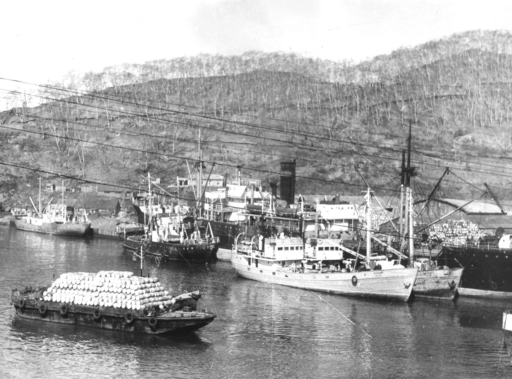 202. Транспортно-холодильные суда Камчатрыбфлота «Мизар» и «Алтаир» в Петропавловском морском рыбном порту, 1960-е гг. (из собрания Т. М. Кривоногова)
