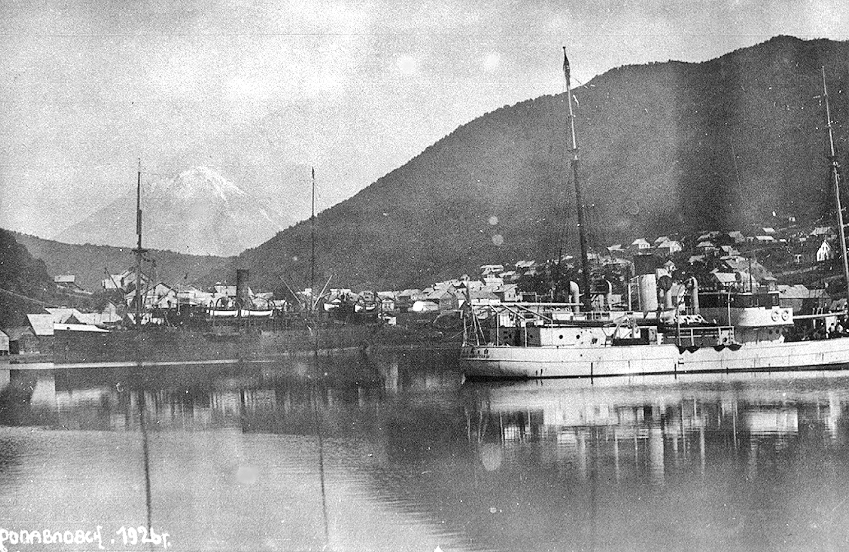 132. Порт Петропавловска в 1922 г. На переднем плане — японское исследовательское судно (из собрания В. Г. Очеретина)