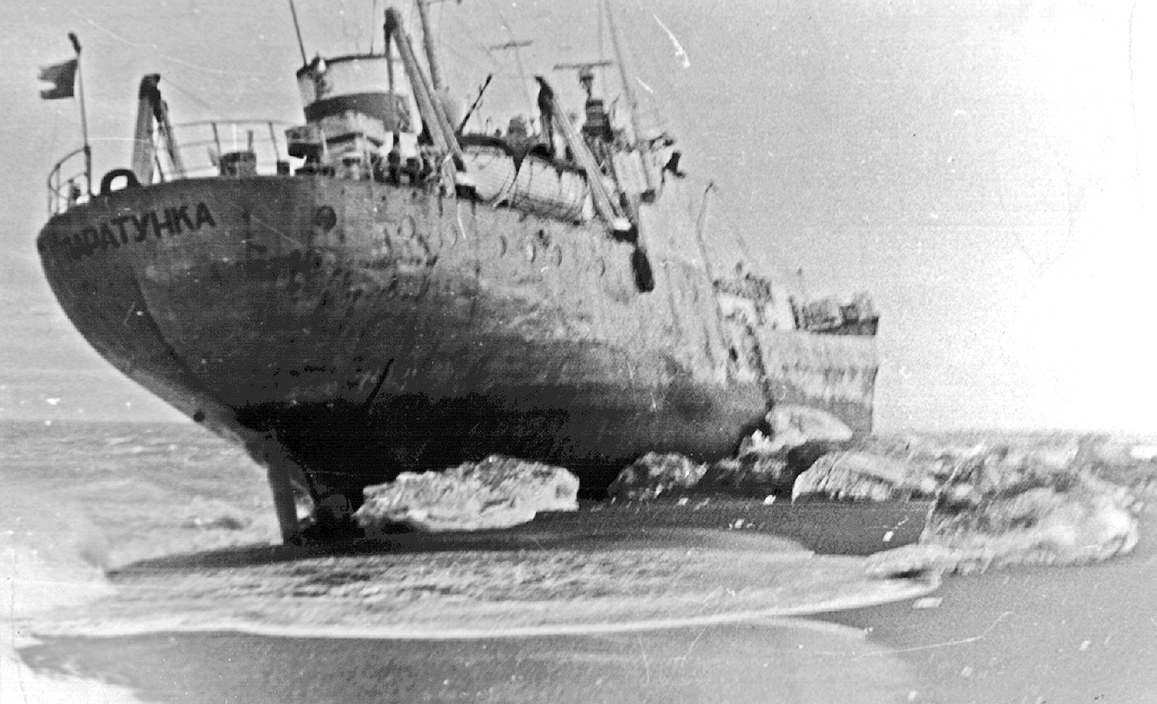 136. Транспортно-рефрижераторное судно "Паратунка" Камчатрыбфлота на мели, 1960-е гг. (из собрания В. Г. Очеретина)