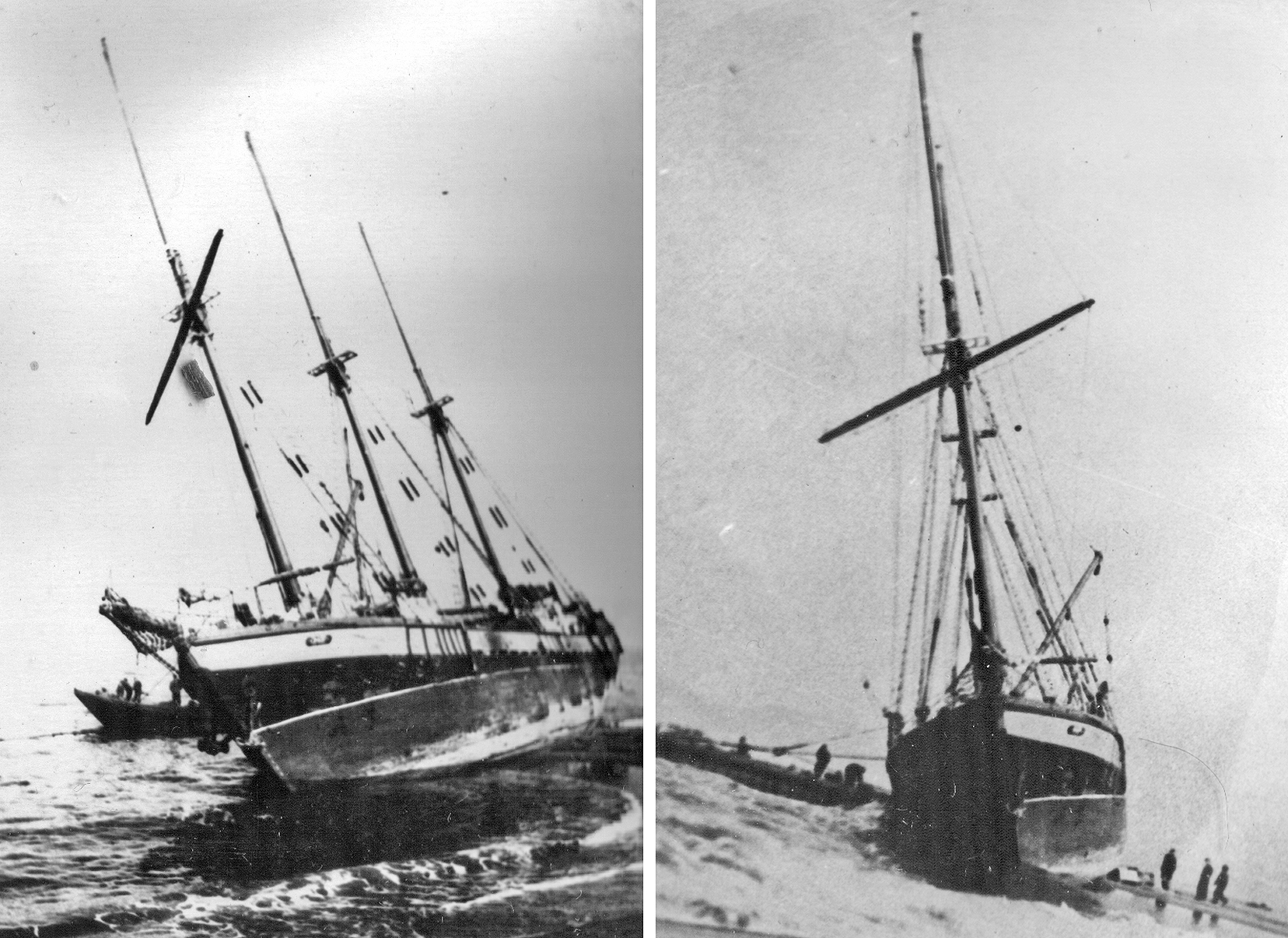 106. Слева — обледенение на СРТ "Соликамск" УТРФ Камчатрыбпрома, начало 1960-х гг. Справа — спасатель УТРФ "Стерегущий" (из собрания Ю. А. Моисеева)