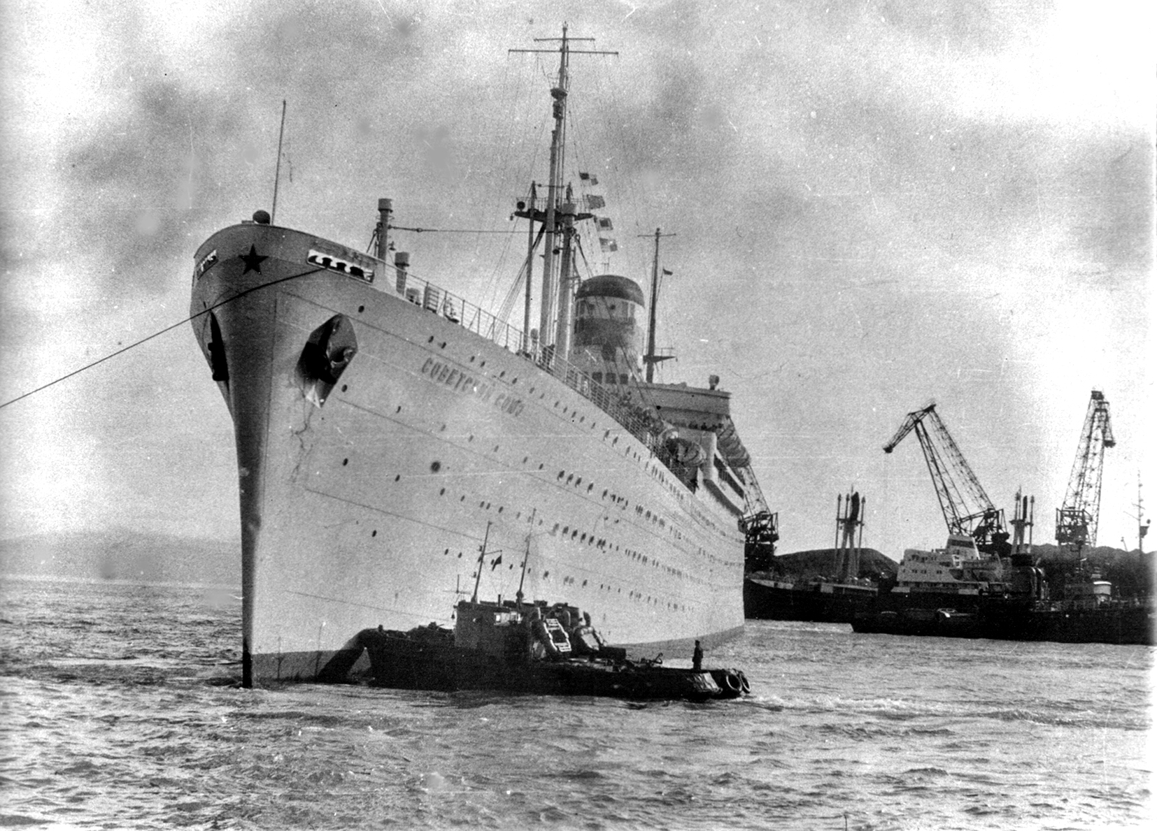 120. Пассажирский турбоход Дальневосточного государственного морского пароходства "Советский Союз". Изображения этого судна с чёрным корпусом считаются редкими. До 1959 г. (из собрания Ю. А. Моисеева)