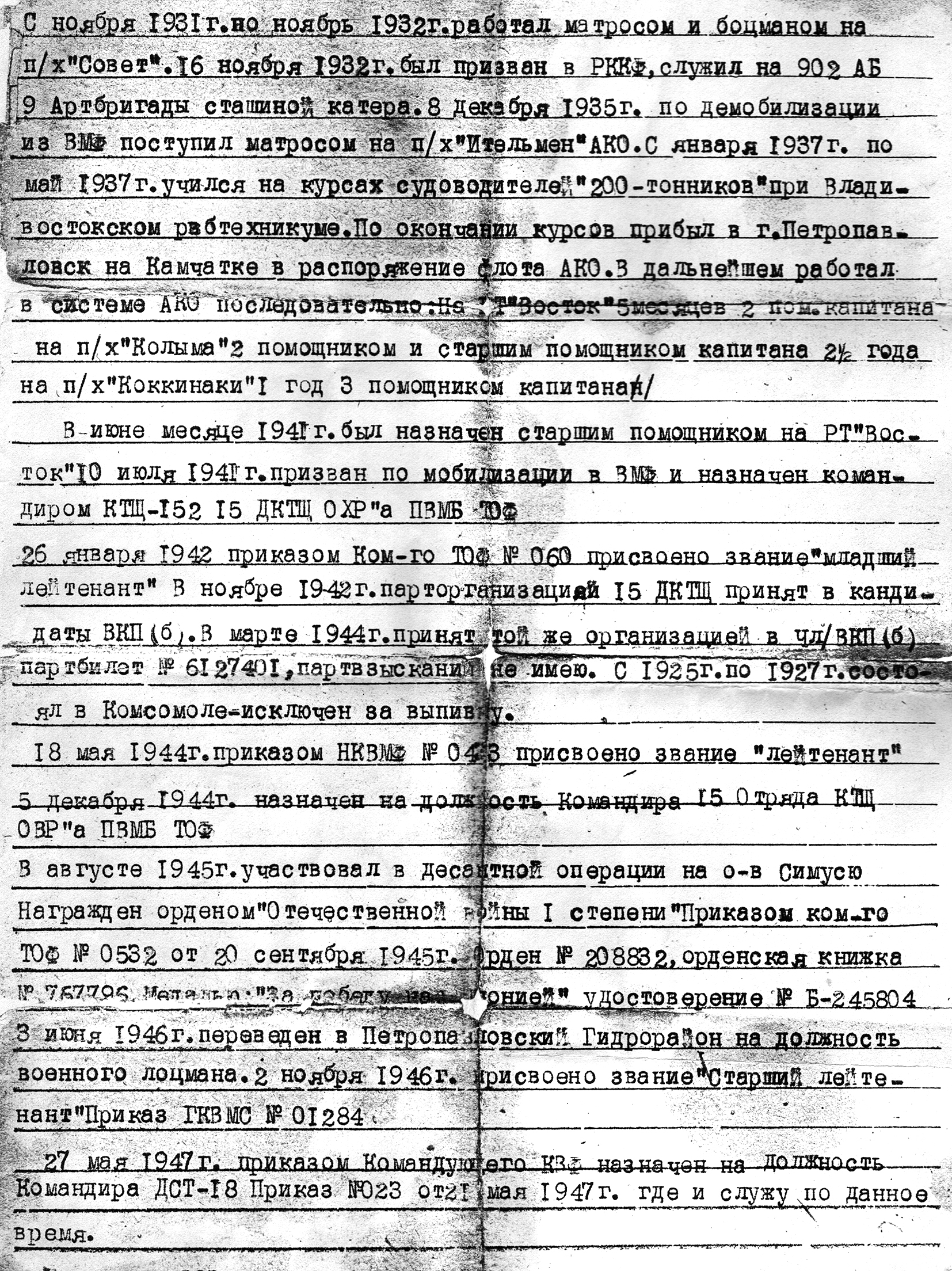62. Биография А. Н. Моисеева (из собрания Ю. А. Моисеева)
