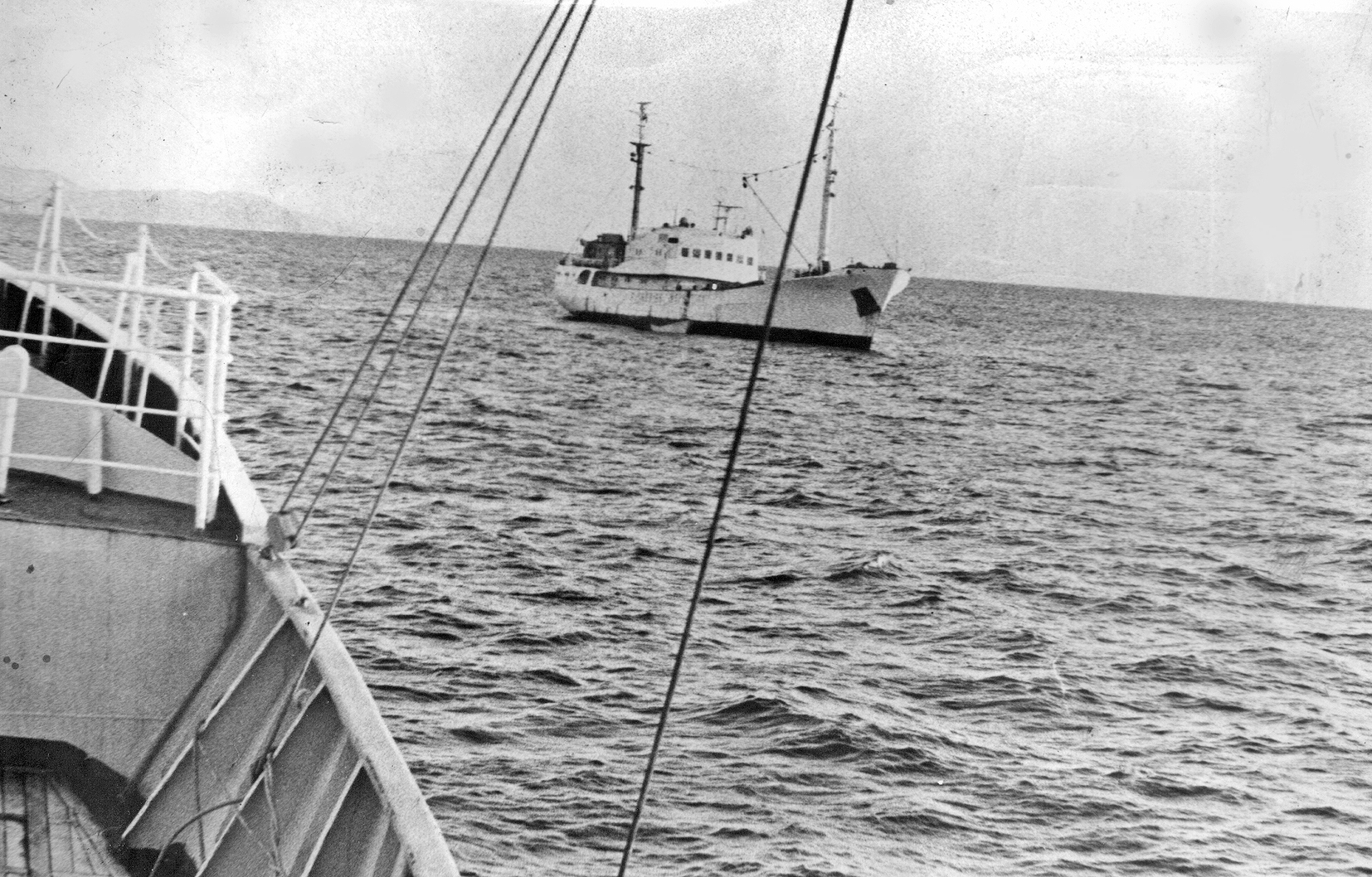 112. Гибель СРТ "Коршун" в Охотском море 7 марта 1968 г. Рядом находятся РС-300 "Медный" и "Амаян" (из собрания Ю. А. Моисеева)