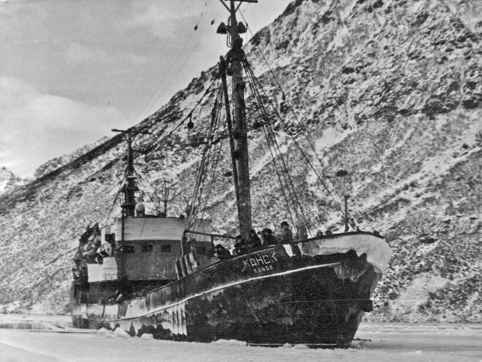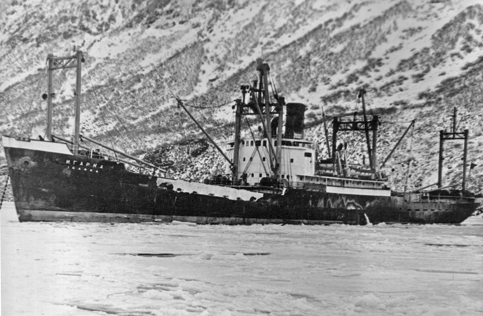 126. Пароход "Якут" в бухте Лаврова, декабрь 1958 г. (из собрания Ю. А. Моисеева)