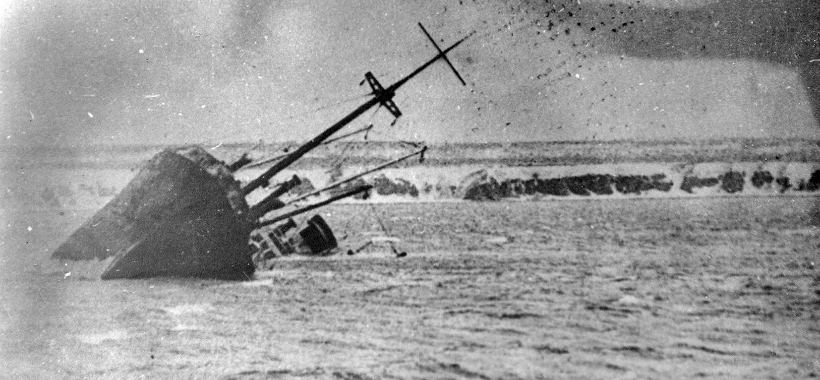 90. СРТ, затонувший слева от входа в бухту Лаврова (из собрания Ю. А. Моисеева)