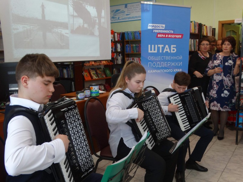 Сотрудники библиотеки выражают особую благодарность автору сборника «Солдатская листовка» Вере Анатольевне Нагибиной, поэтессе Ирине Вялых, фотографу Светлане Лигостаевой, членам клуба старшего поколения «Камчадалы» (рук. Ольга Борисовская), членам КРИЭОО «Ковчег» (рук. Наталья Червонюк), членам клуба старшего поколения «Огонек» (рук. Ольга Королькова).