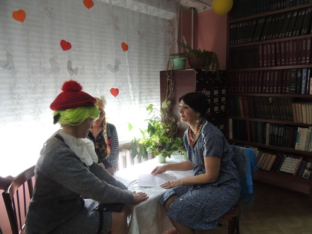 В начале вечера ведущая поздравила присутствующих с участием во Всероссийской акции, рассказала историю возникновения «Библионочи» в России. Затем работники библиотеки совместно с членами клуба «В кругу друзей» показали театрализованный отрывок из пьесы Владимира Гуркина «Любовь и голуби».