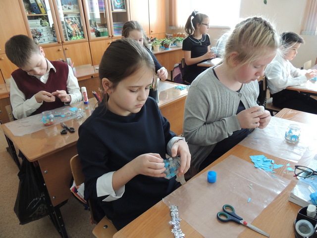 Ничем не примечательную пустую баночку ребята превратили в произведение современного дизайна, которое можно поставить на полку или стол. Яркое мерцание огонька свечи создаст волшебную атмосферу и поможет перенестись в зимнюю сказку. А от подсвечников, сделанных своими руками, веет теплом и уютом. Многие участники клуба решили подарить свои работы друзьям и родным.