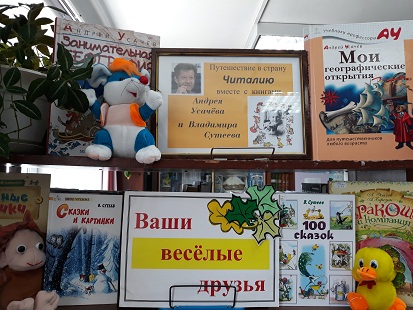А получить ответы на вопросы викторины маленьким читателям помогла книжная выставка "Ваши весёлые друзья", которая была подготовлена к мероприятию сотрудниками библиотеки.