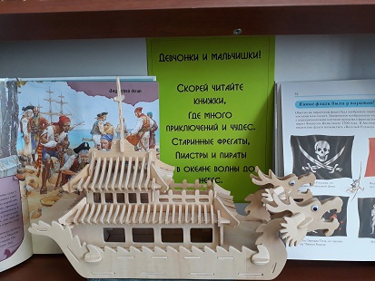 "Даёшь нескучные каникулы!" - под таким лозунгом прошло очередное заседание клуба библиотеки №5 "За страницами учебника", которое было посвящено истории пиратства и литературе о нём. Ребята узнали как жили пираты, в каких морях плавали и когда появились первые пиратские суда, в игровой форме познакомились с пиратским бытом и традициями. Большой интерес у юных читателей вызвали модели пиратских кораблей, которые нужно было собрать своими руками, получив необходимые знания о их устройстве из книг. Две команды, на которые разделились участники мероприятия для проведения конкурса, справились с этим на "отлично", заработав немало "золотых дублонов". А корабли, собранные руками ребят, теперь украшают выставку в библиотеке №5.