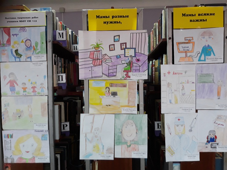 Активно включилась в подготовку к выставке средняя школа №12, с которой библиотека №5 ведёт многолетнее сотрудничество. Работы, выполненные учениками этой школы, пронизаны не только любовью к мамам, но и уважением к их труду. Многие ребята специально посетили мамино рабочее место, больше узнали о её профессии и особенностях деятельности, поэтому выставка в библиотеке стала не только подарком многим мамам, но и настоящим профориентационным мероприятием.