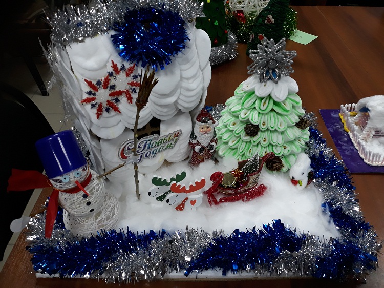 Настоящая новогодняя сказка встречает посетителей в библиотеке №5: повсюду сказочные персонажи в красочных костюмах, Дед Мороз и снеговики, волшебные замки и маленькие домики гномов, новогодние ёлочки и ёлочные украшения. Авторы всех этих чудес - дети и их родители - читатели, участники традиционной новогодней выставки творческих работ "Новый Год - пора чудес!", которая в этом году превзошла все ожидания сотрудников библиотеки №5. Огромное количество идей и фантазий, воплощённое в работах, стало рекордным по итогам выставок прошлых лет. Крайне доступные материалы, которые есть в каждом доме, превратились в руках маленьких мастеров - учеников начальных классов школы №12 - в настоящие произведения искусства.