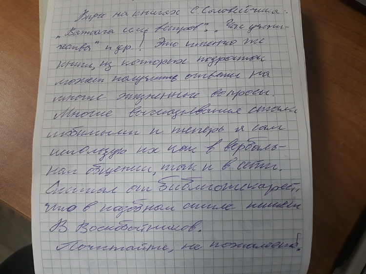 Вот уже десять лет в библиотеке №5 проходит ежегодная акция "НЛО: Необыкновенное Литературное Открытие", которая за эти годы собрала огромное количество читательских отзывов о книге, ставшей для каждого одной из самых любимых, дала ответы на насущные вопросы, поддержала в трудную минуту и, возможно, способствовала тому, чтобы человек стал настоящим ЧИТАТЕЛЕМ, ценителем литературы и литературного языка. Книги отзывов акции стали настоящими рекомендательными списками литературы для тех, кто только постигает мир книг, ищет в нём своего спутника и в таком деле ещё не знает, с каким запросом обратиться к библиотекарю, но очень положительно воспринимает совет коллеги по читательскому цеху. А для специалистов библиотеки - это хороший ориентир для формирования востребованного библиотечного фонда.