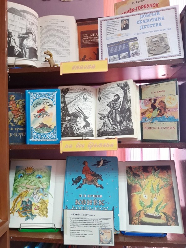 Юбилею Петра Павловича Ершова - русского поэта, прозаика, драматурга - посвящена книжная выставка "Добрый сказочник детства", подготовленная сотрудниками библиотеки №5.