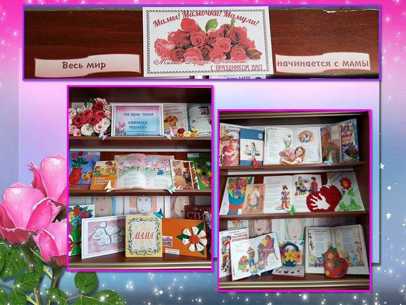 Все творческие работы выполнены с особой добротой и любовью и стали настоящим украшением выставки "Подарок маме", а на книжной выставке "Ты одна такая - любимая, родная" вниманию читателей представлены произведения о мамах и бабушках, рассказана история праздника. Портреты любимых мамочек, нарисованные ребятами, стали настоящим признанием в любви самому родному и близкому человеку - МАМЕ.