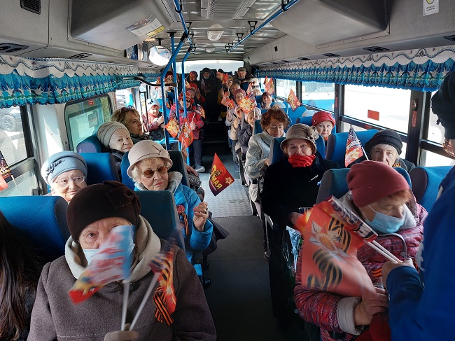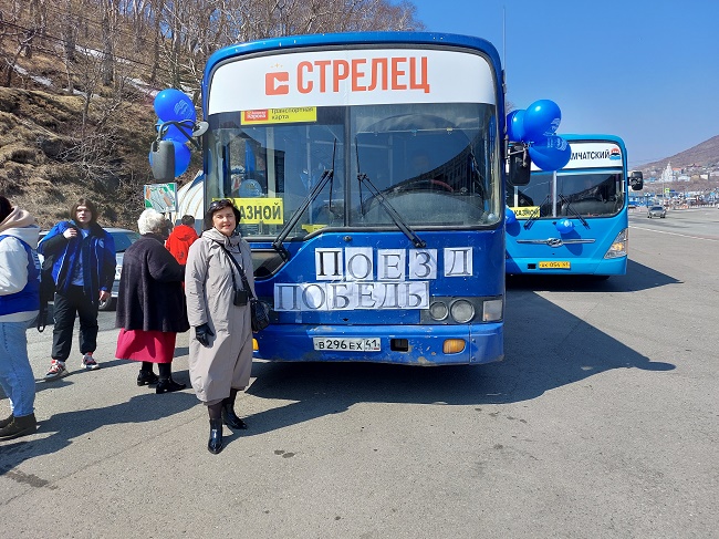 Настоящим подарком для ветеранов и детей войны стала историческая автобусная экскурсия по памятным местам Петропавловска-Камчатского, проведённая главным библиотекарем библиотеки №5 Ириной Васильевны Кисличенко в рамках краевой акции "Поезд Победы", организованной Законодательным Собранием Камчатского края. Представители старшего поколения краевой столицы смогли совершить путешествие в прошлое, посетить исторические памятники, посвящённые событиям Великой Отечественной войны и камчатцам, сражавшимся за Родину, поделиться своими воспоминаниями о военном детстве и юности.