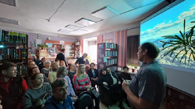 28 января библиотека №5 традиционно распахнула свои двери для желающих посетить очередное мероприятие проекта библиотечного краеведческого клуба "Историк" - "Камчатские встречи", главным гостем которого стал известный камчатский альпинист, фотограф, гид и коллекционер Александр Биченко. Зал библиотеки едва смог вместить всех желающих совершить увлекательное виртуальное путешествие с человеком, который уже много лет путешествует по всему миру, покоряя самые высокие горные вершины.