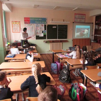 В начале мероприятия со школьниками была проведена беседа, из которой они узнали о том, на какие семейства делятся морские млекопитающие, населяющие акваторию Камчатки. В частности было рассказано о семействах: моржовых, ушастых тюленей, настоящих тюленей, куньих. Было подчёркнуто, что все эти виды животных отлично приспособлены к жизни в воде, и все они постоянно образуют огромные береговые лежбища
