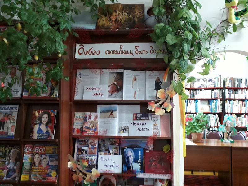 На абонементе читателей встречала книжная выставка «Добро активным быть должно».