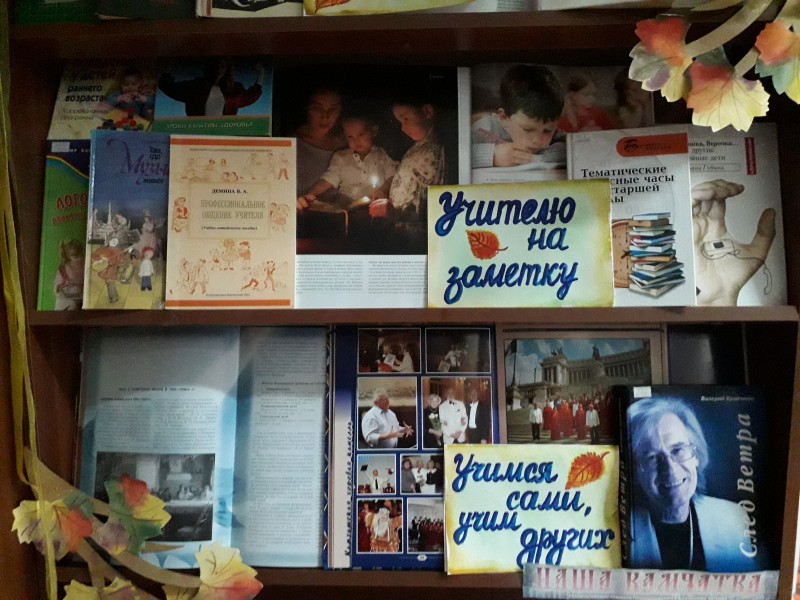 Подраздел «Чаша жизни» представлен трудами Дмитрия Кабалевского, Анатолия Луначарского, Василия Сухомлинского, Антона Макаренко о педагогике и воспитании подрастающего поколения. В подразделе «Учителю на заметку» - методические рекомендации для преподавателей. Обязательно камчатская страничка «Учимся сами, учим других». Здесь представлена литература о становлении образования в Петропавловске–Камчатском, о преподавателях районов Камчатского края, об известных преподавателях дополнительного образования и культуры города. И в завершении книжной выставки - разноцветье детского подраздела «Школьный ералаш», где ребята смогли найти для себя книжки с весёлыми историями о своих сверстниках.