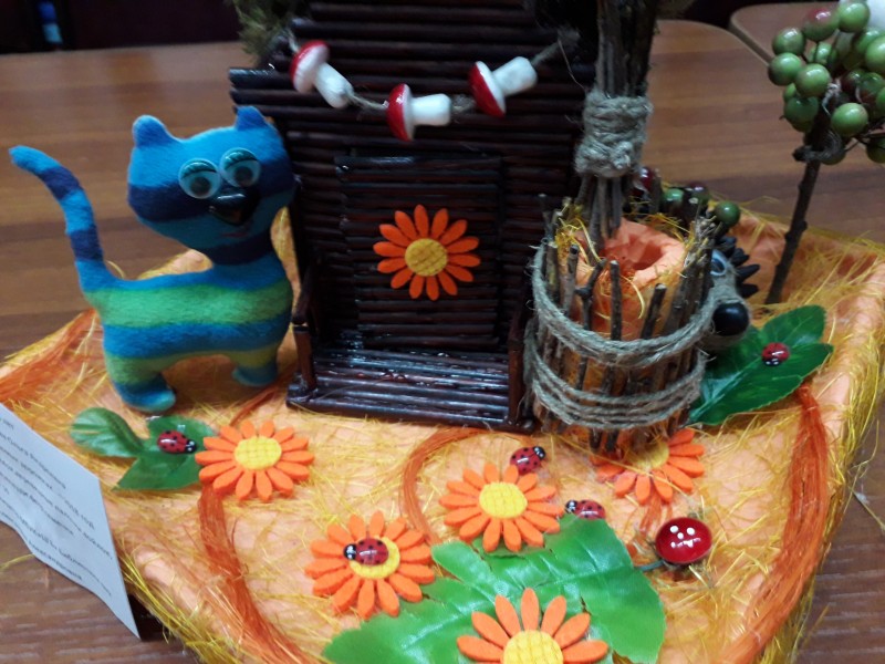 Что за прелесть эти сказки! Гламурная красавица Баба-Яга расскажет вам истории «Там на неведомых дорожках». Тонкая работа изготовления избушки, котейки из фетра, ежа из семечек. От всей работы прямо исходит запах золотой осени и солнечных зайчиков.