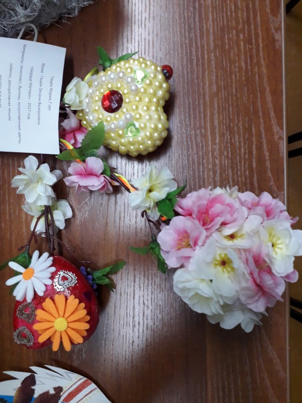 Не пройти мимо шикарных картин ручной, кропотливой работы из крупы, солёного теста, алмазной мозайки.