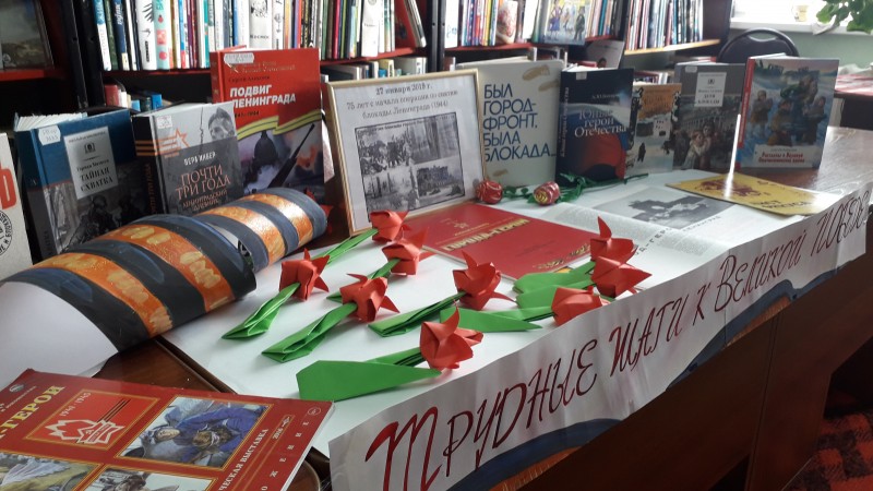 На выставке представлены книги отечественных авторов прошлых лет и современный взгляд на трагические события в истории нашей страны, сборники документов, воспоминания взрослых и детей блокадного Ленинграда.