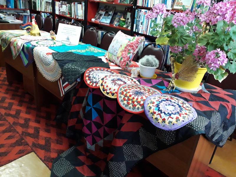 В Дни славянской письменности и культуры в библиотеке №9 экспонировалась персональная выставка работ прикладного творчества Греховой Любови Анатольевны - нашей читательницы и мастерицы. Уникальные работы в технике лоскутное шитьё или на современном языке пэчворк, поделки из соломки, вязанные крючком изделия, стёганые жилеты, расшитые подушки оставили тёплые, яркие впечатления у каждого. Выставка погружала в атмосферу нашего культурного прошлого. Казалось где-то рядом уютный домик, где в русской печи томится ароматная утка, а на столе с белоснежной скатертью ждут гостей румяные пироги. Посетители библиотеки могли насладиться красотой нашей выставки и прикоснуться к самобытному славянскому искусству.