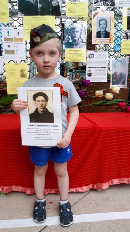 Мурзин Иван Михайлович - прадедушка Андрея Смирнова, воспитанника группы "Веселинка" детского сада №16. Красноармеец 384-ой стрелковой дивизии 11-ой армии Северо-Западного фронта. Погиб в 1942 году.
