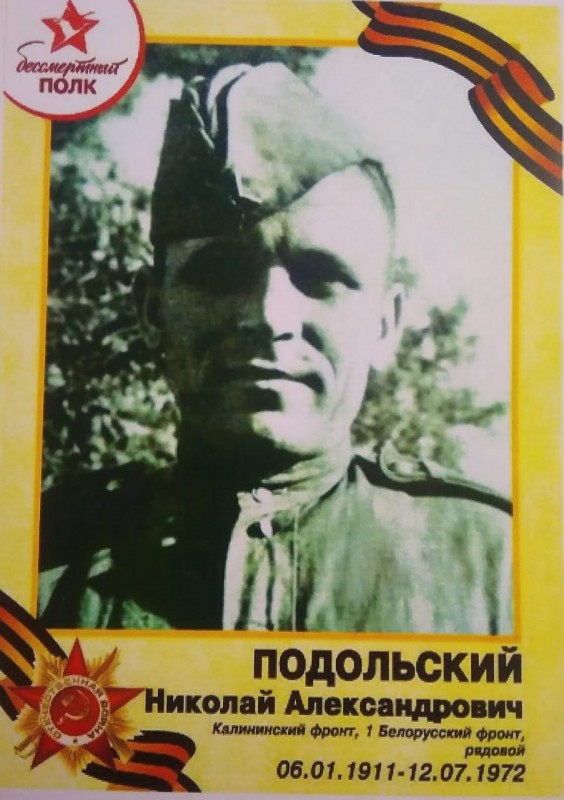 Подольский Николай Александрович - призвался на войну с Камчатки. Дошёл до Польши. На фронте его ценили за сапожное дело