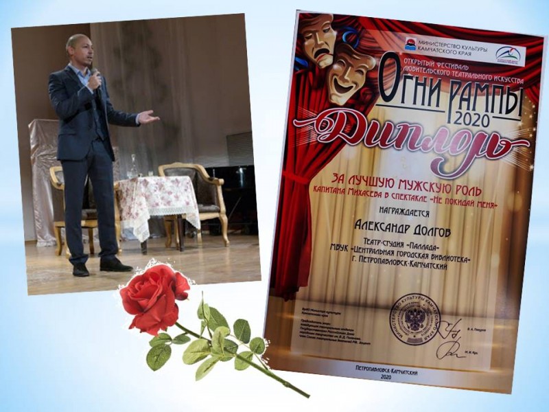 Театр-студия «Паллада» МБУК «Центральная городская библиотека» (г. Петропавловск-Камчатский) под руководством режиссера Александра Долгова стал лауреатом фестиваля «Огни рампы - 2020», а сам руководитель – обладателем диплома за лучшую мужскую роль!