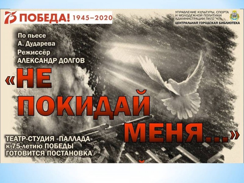 «Выбор пьесы неслучаен: в год празднования 75-летия Победы в Великой Отечественной войне мы не могли не отдать дань памяти и уважения своим дедам, отстоявшим мир для будущих поколений. Она и лиричная, и смешная, и драматичная, трагичная в финале, тронула всех студийцев еще на этапе прочтения»,- рассказывает Александр Долгов.