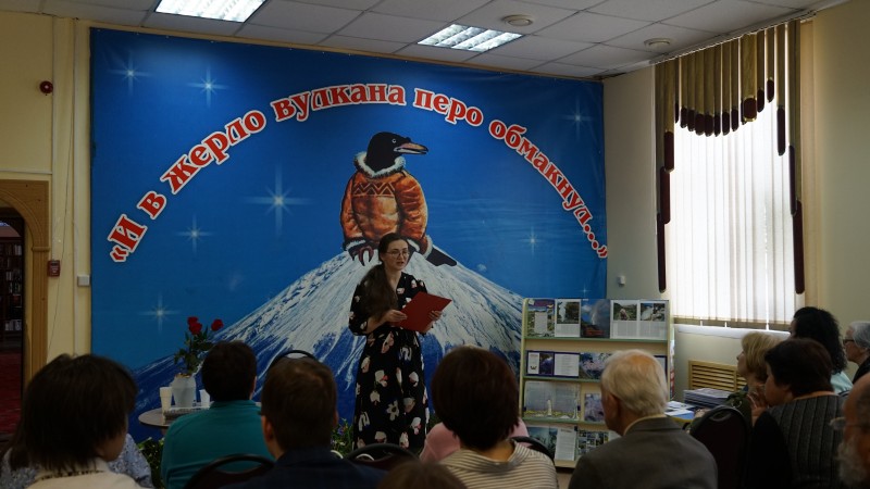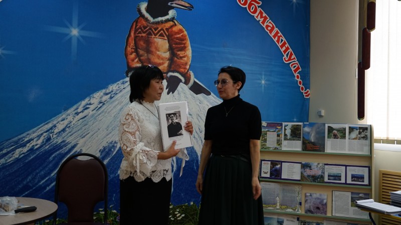 Предваряя ее выступление, ведущий - директор Централизованной библиотечной системы Анна Вартановна Поротникова - выразить слова благодарности специалистам, которые помогали в создании указателя. Бесценные советы и уникальные издания из личной коллекции подарила Беляева Мария Евгеньевна, заведующий отделом сохранения нематериального культурного наследия «Камчатский центр народного творчества». Марина Евгеньевна – этнограф, фольклорист – продолжает дело Георгия Поротова, выезжает в фольклорные экспедиции, собирает по крупицам бытования, предания, мелодии народов Камчатки, исследует и осмысляет наше наследие, готовит к публикации фольклорно-этнографические материалы.