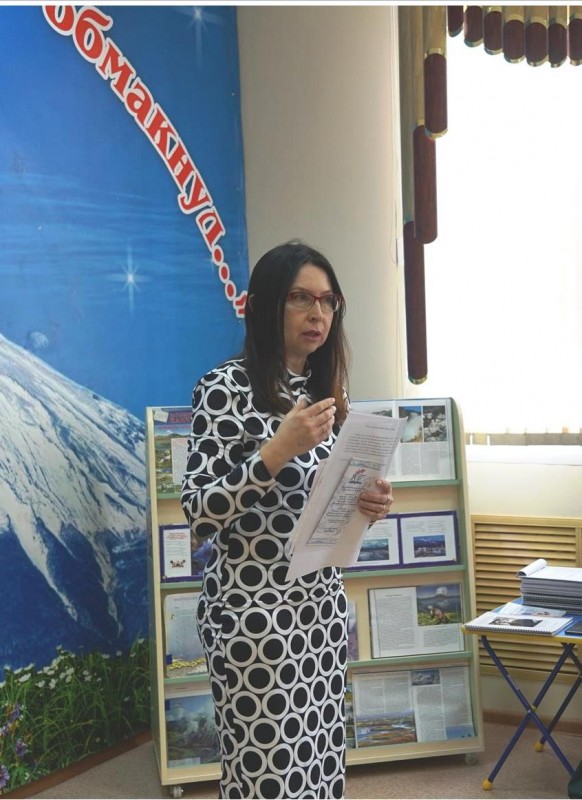 Поделиться опытом педагогической и методической деятельности по продвижению родной литературы в образовательном учреждении пригласили Оксану Викторовну Пресман - воспитателя высшей категории детского сада № 42, Надежду Александровну Закревскую - учителя русского языка и литературы средней школы № 26, которая рассказала о своем, авторском, подходе к погружению школьников в творчество камчатских писателей и поэтов.