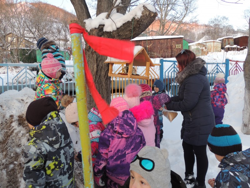 В детском саду №44 прошла экологическая акция «Поможем птицам пережить зиму!». Зима – трудное время для птиц и голодные птицы сильно страдают от холода. Сотрудники информационно-библиотечного центра «Доступный город» рассказали воспитанникам детского сада какие зимующие птицы живут в нашем городе, чем питаются зимой и как им помочь пережить зимние холода. А ещё дети узнали, как правильно ухаживать за кормушками и чем можно кормить пернатых. Ребята активно отгадывали загадки, слушали пение птиц и отвечали на вопросы, которые им задавали библиотекари. Потом ребята с удовольствием отчистили кормушки от снега и насыпали корм. Дети обещали не забывать кормить пернатых друзей.