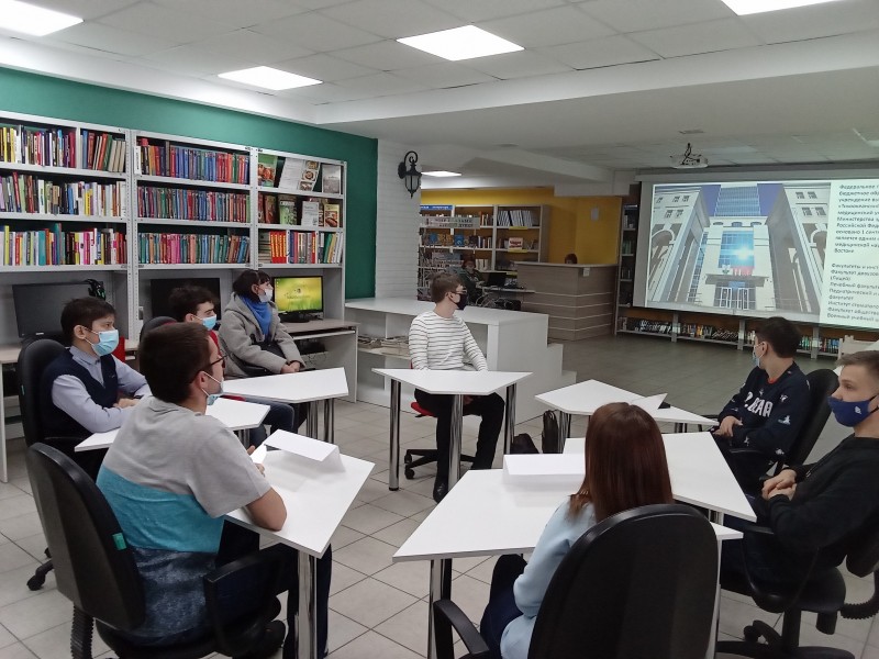 В информационно-библиотечном центре «Доступный город» прошла встреча студентов со старшеклассниками школ г. Петропавловска-Камчатского. Учащиеся двух ведущих ВУЗов Дальнего Востока: Дальневосточного федерального университета и Тихоокеанского государственного медицинского университета поделились опытом поступления в свои учебные заведения. Рассказали как у них устроен процесс обучения, с какими трудностями сталкивались в первое время, а школьники задавали много разных вопросов, на которые студенты с удовольствием отвечали.