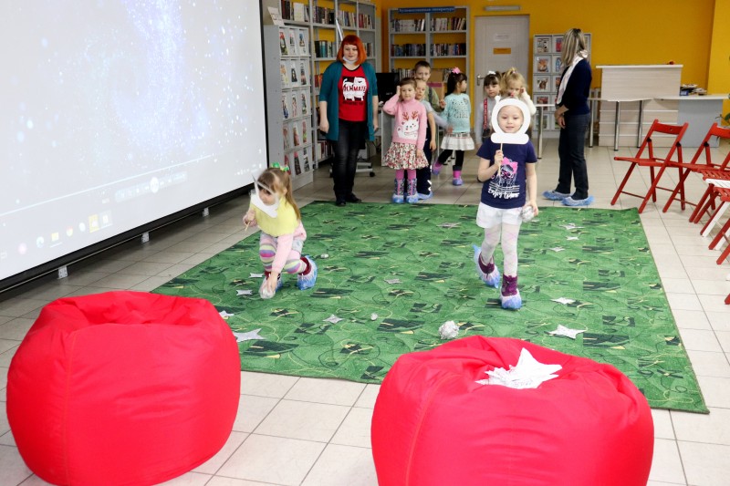 Информационно-библиотечный центр «Доступный город» 15 апреля встречал маленьких гостей из детского сада №58. Ребята в первый раз пришли в библиотеку, поэтому каждая полка с яркими и красочными детскими книгами захватывала их внимание. Пусть на улице моросит весенний дождик, а у нас в библиотеке – свой космос. Подготовив ракету и скафандры, мы отправились в космическое путешествие к дальним планетам. Юные космонавты облетели, как Юрий Гагарин, вокруг Земли, посмотрели на нее в иллюминатор, наблюдая как она удаляется все дальше и дальше, и продолжили свой путь в космическом пространстве. Иногда мы делали остановки, чтобы пропустить пролетающие мимо астероиды. А еще мы собирали звезды.