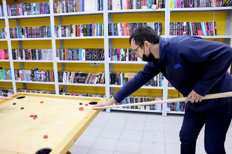 А правила? Правила игры в новус сразу не запомнить. Они отличаются от бильярдных правил. Читатели, которые пришли к нам в информационно-библиотечный центр "Доступный город", познакомились с ними уже в процессе самой игры. За непринужденной беседой и с кием в руках о правилах рассказал и показал их применение на практике Андрис Кокаревичс, популяризатор новуса на Камчатке, который играет в эту игру с 10 лет.