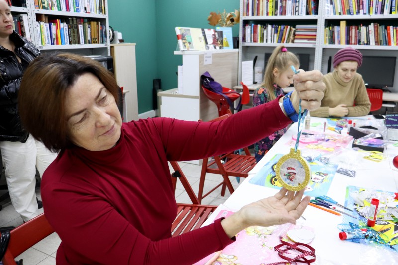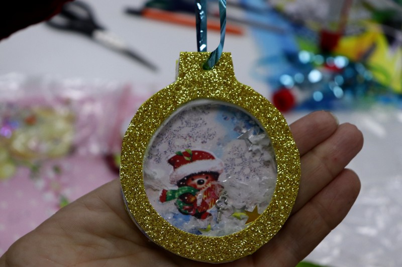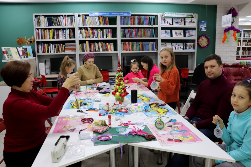 В окружении книг и новогоднего оформления, в уютной компании прошел мастер-класс по созданию новогодней игрушки. И делали мы не просто игрушку, а игрушку-шейкер из фоамирама, внутри которой приятно зашуршал искусственный снег и засверкали праздничные звезды.
