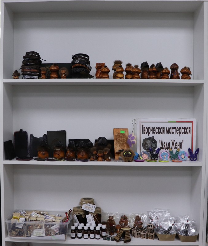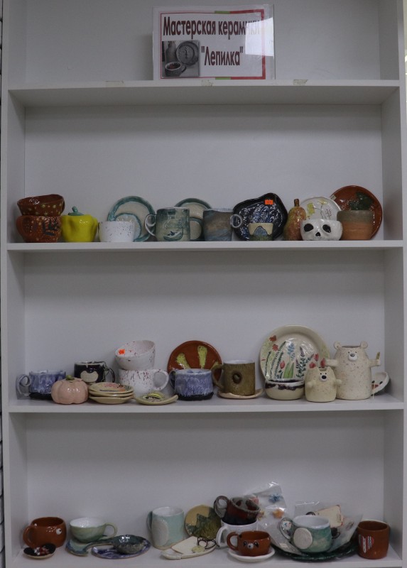 На выставке были представлены работы творческой мастерской «Дядя Женя», мастерской керамики «Лепилка», Ольги Радуги представителя КРОО «Мы Русичи»,творческой мастерской «АСсоль» Анны Сходновой, бисерного художника Елены Илькив. Каждый представленный экспонат изготовлен с любовью, поэтому не оставил равнодушным ни одного посетителя выставки.