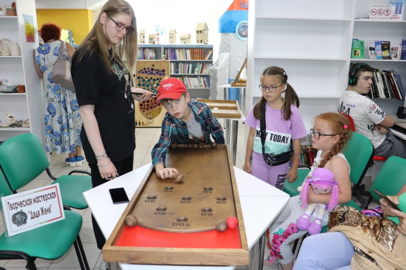 Очень увлекли всех крафтовые игры из дерева, представленные творческой мастерской «Дядя Женя».