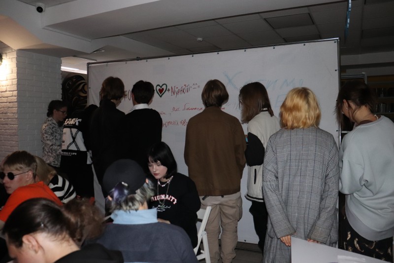 Открыл квартирник дуэт «Для баланса Вселенной». Авторы-исполнители - Захар Доценко и Конов Михаил, которые исполнили песню «Мой дом». Ребятам по 14 лет, они являются активными участники библиотечного клуба «Аллегро», где на творческих встречах обмениваются опытом и совершенствуют свое мастерство.