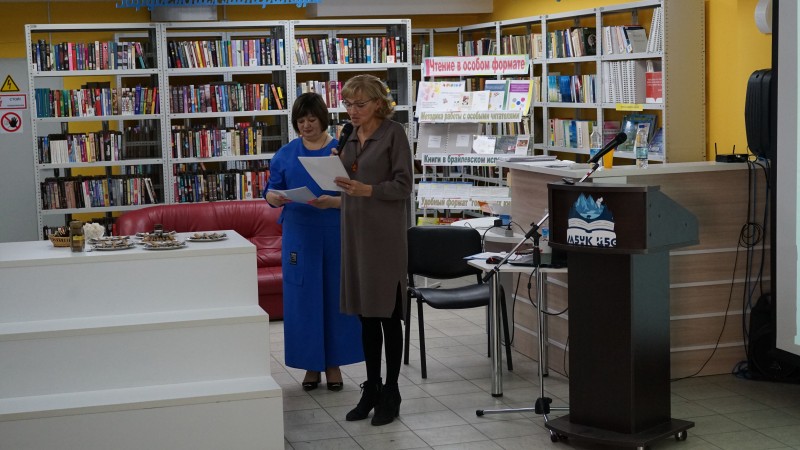 Благодарность за выступление получает О.Я. Колесанова - сотрудник краевой научной библиотеки