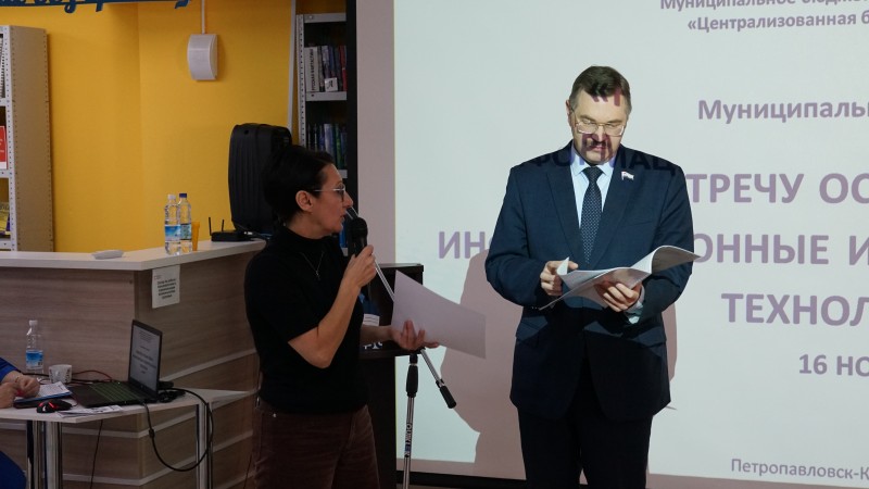 Она пожелала успешного проведения мероприятия и вручила благодарность депутату Законодательного Собрания Камчатского края Владимиру Александровичу Агееву за финансовую помощь в пополнении книжного фонда библиотеки специальными изданиям для читателей с ограниченными возможностями здоровья. Депутат принял участие в работе семинара и предложил по его результатам составить рекомендации, которые будут направлены в исполнительные и представительные органы власти регионального и муниципального уровней.