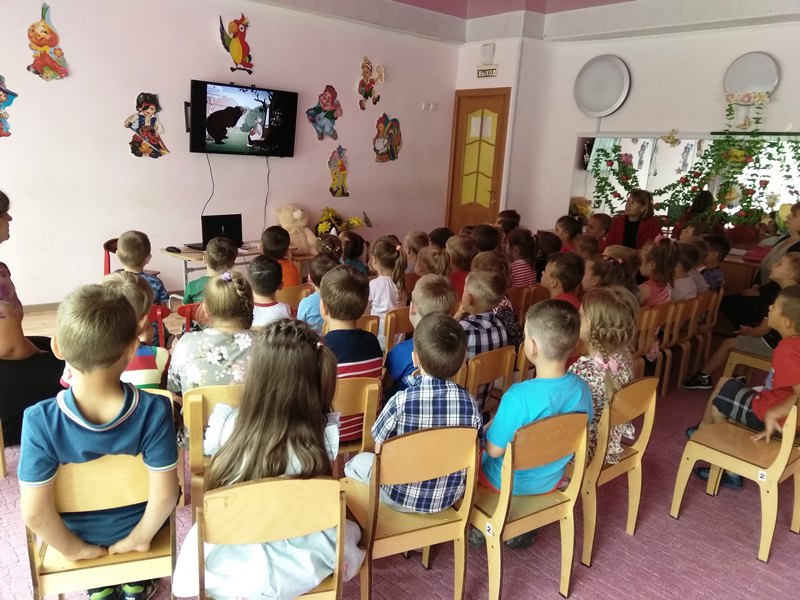 Дети увлеченно отвечали на вопросы викторины по любимым сказкам писателя, находили сказку по иллюстрации, искали героев, чьи вещи оказались в мешке для утерянных вещей, смотрели мультфильм.