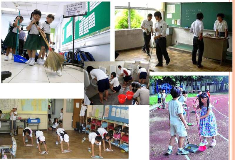 Нагрузке японских и китайских школьников наши ученики не позавидовали: каникулы у них короткие, и отдыхать им некогда. Это самое лучшее время для подготовки к экзаменам, которые проходят несколько раз в год! А еще уборкой школы и прилегающей территории занимаются … сами учащиеся, начиная с малышей и заканчивая старшеклассниками. Причем, порядок наводят не только в классных комнатах, но и на кухне, спортивном зале, туалетах…