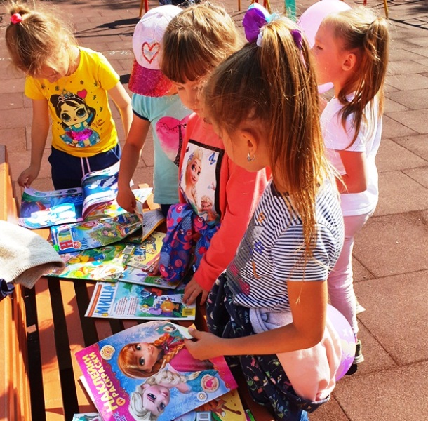 23 августа в парке «Индустриальный» для детворы сотрудники Информационно-библиотечного центра провели познавательно-развлекательную программу «Мы хотим, чтоб ваше лето было книгами согрето». В течении часа для ребят проходили различные литературные игры, забавы и развлечения: малыши угадывали литературных персонажей в конкурсе «Знатоки сказок», рисовали мелом своих любимых домашних питомцев, отвечали на вопросы викторины «Сказочный калейдоскоп».